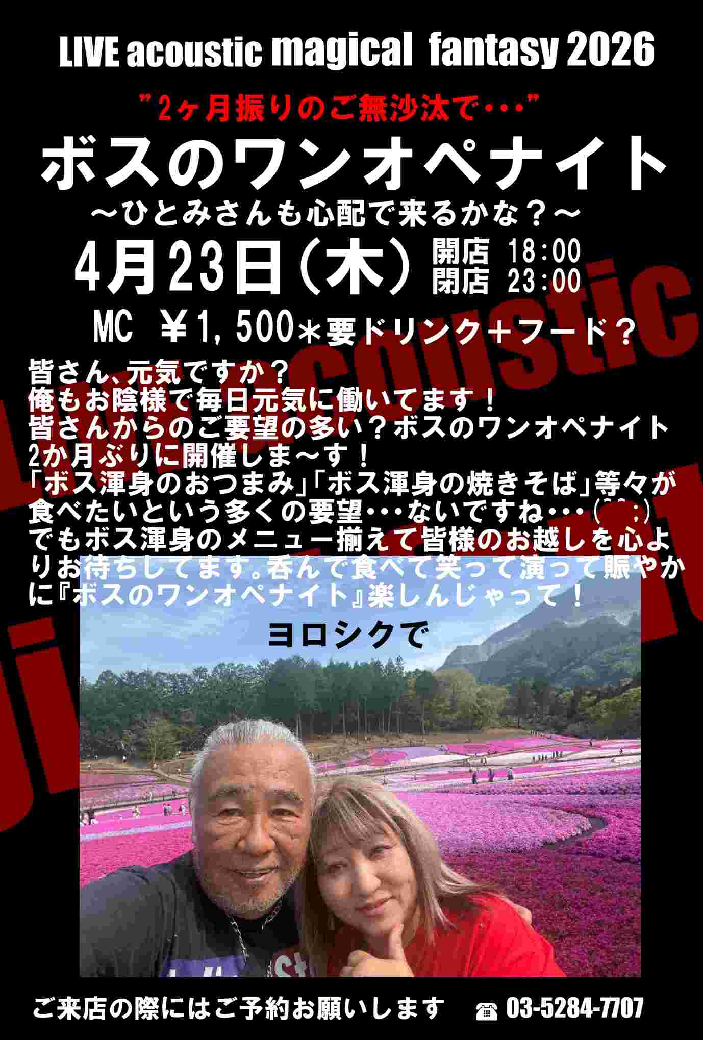 MC¥3,500 当日¥4,000 開場18:00 開演19:00